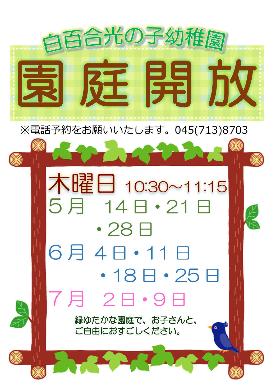 5月~ 園庭開放のお知らせ