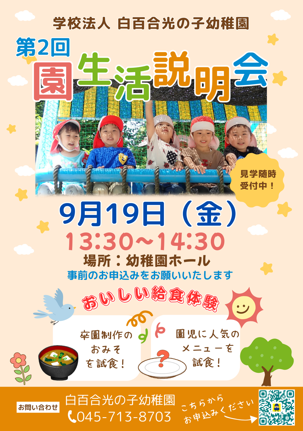 卒園制作のおみそで作ったお味噌汁と、園児に人気のお給食メニューの試食もございます。