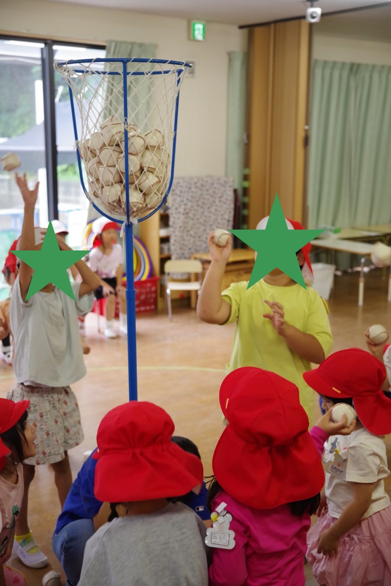 スターマンと一緒にダンスや体操をして野球を教えていただきました。